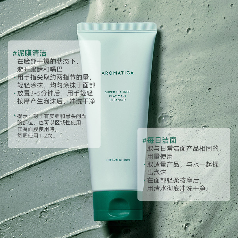 📚 AROMATICA爱露梦超级茶树泥膜洗面奶去角质黑头清洁毛孔舒缓镇静
