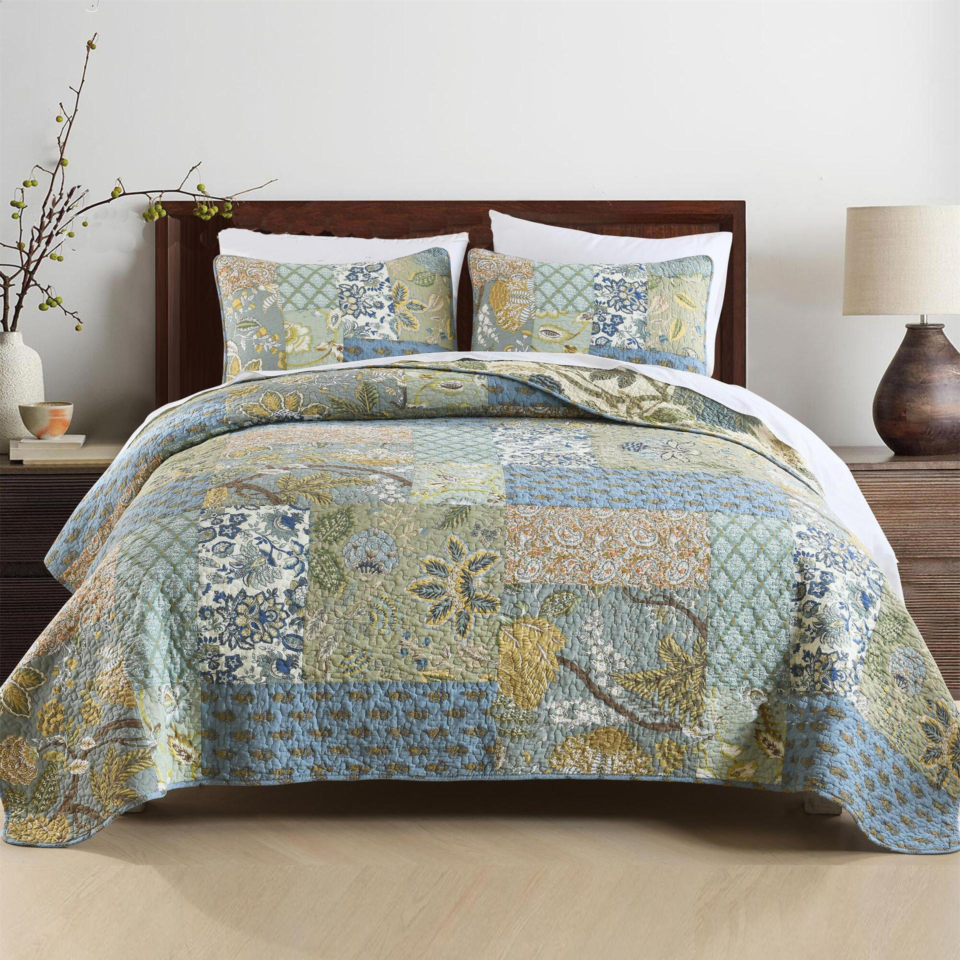 📚 外贸出口床单 植物印花手工绗缝被床盖三件套 大尺寸榻榻米垫炕垫