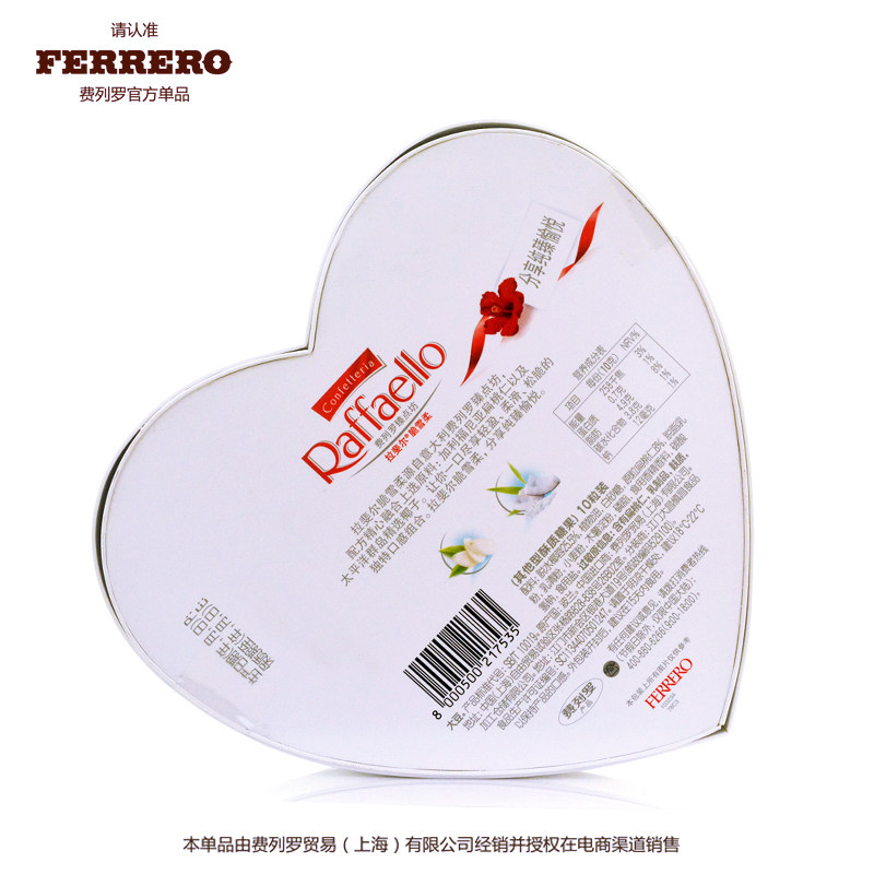 📚 费列罗巧克力拉斐尔椰蓉10粒心形礼盒送女友生日情人圣诞节礼物盒
