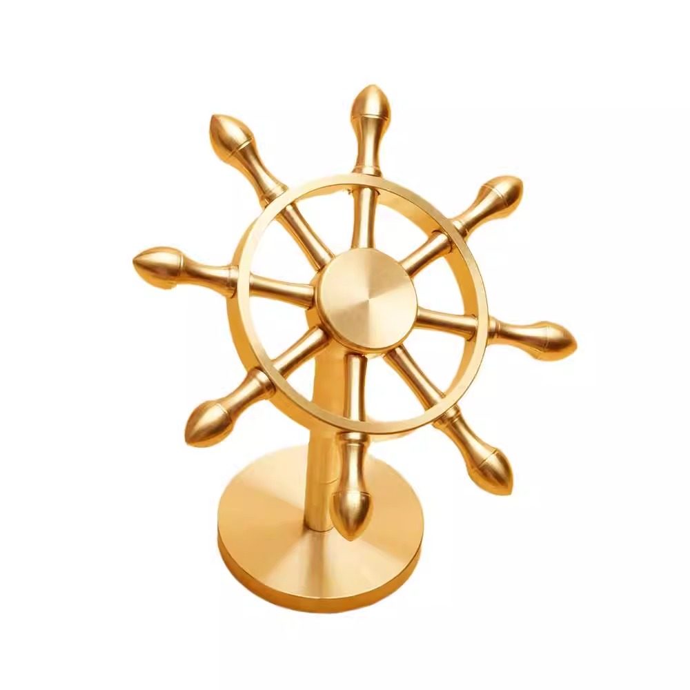 📚 黄铜领航舵一帆风顺创意帆铜船舵方向盘转转桌面摆件解压神器送礼