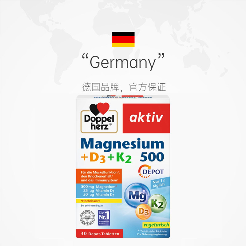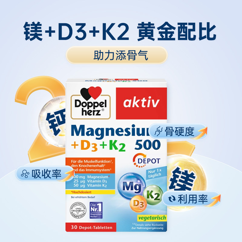📚 【自营】德国双心维生素d3k2镁元素补充骨骼营养片中老年防腿抽筋