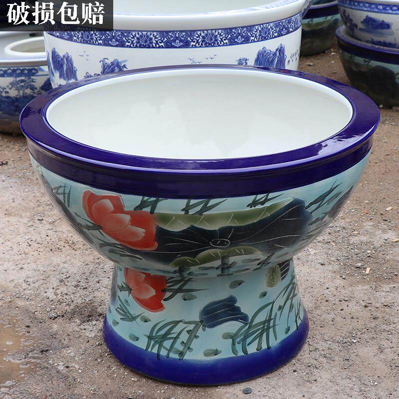 📚 莲景德陶瓷鱼缸落碗地立柱式客厅大号镇吸SNC水石盆乌龟缸睡莲盆