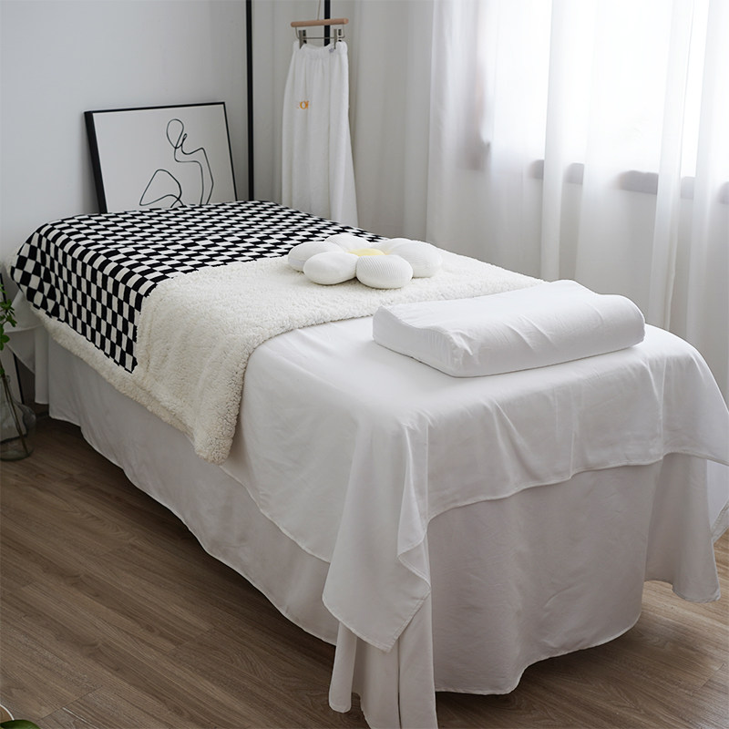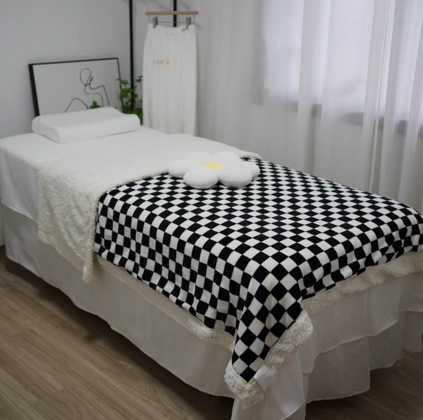 📚 若芙美容床罩小红书网红美容院四件套床单黑白格盖毯小清新风