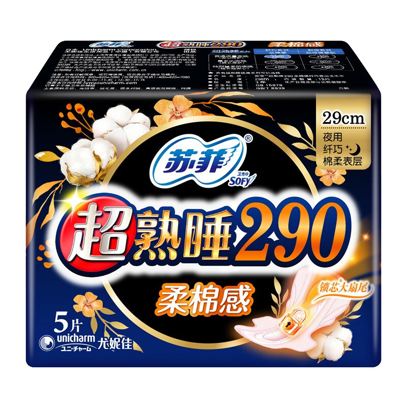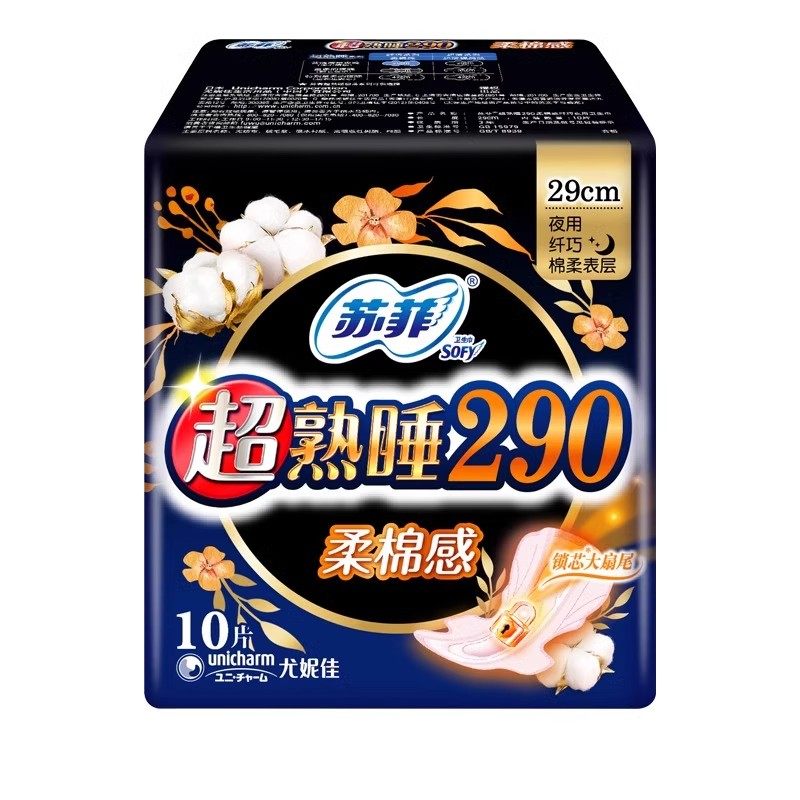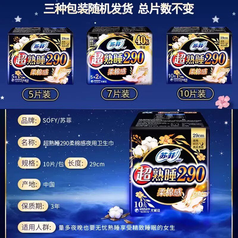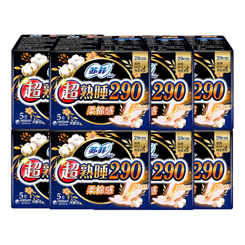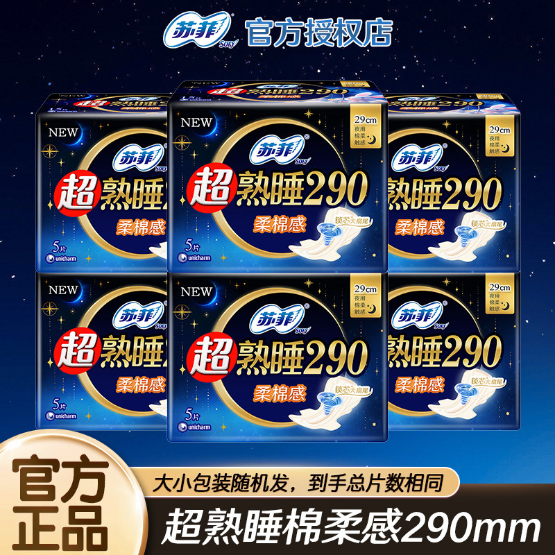 📚 苏菲卫生巾量多夜用纤巧290mm超熟睡柔棉感整箱姨妈巾旗舰店正品
