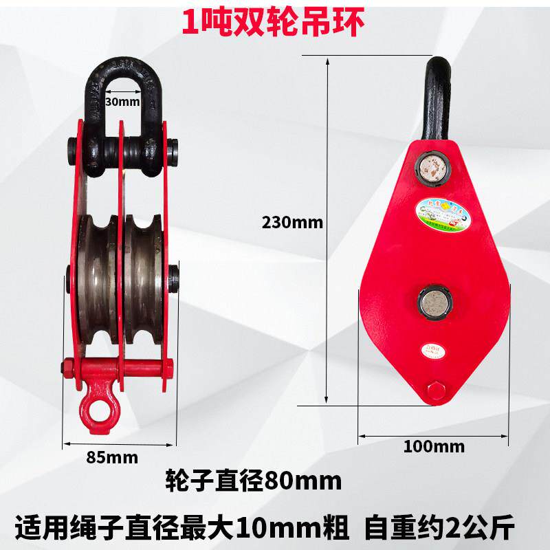 📚 国标双起重滑车轮滑轮组三轮吊轮省力动滑轮两轮多滑吊环滑车轮钩
