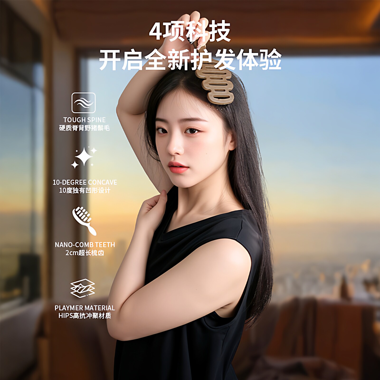 #护发神器 #蓬松神器 #按摩头部 #松塔猪鬃护发梳 #网红梳子 #女士专用