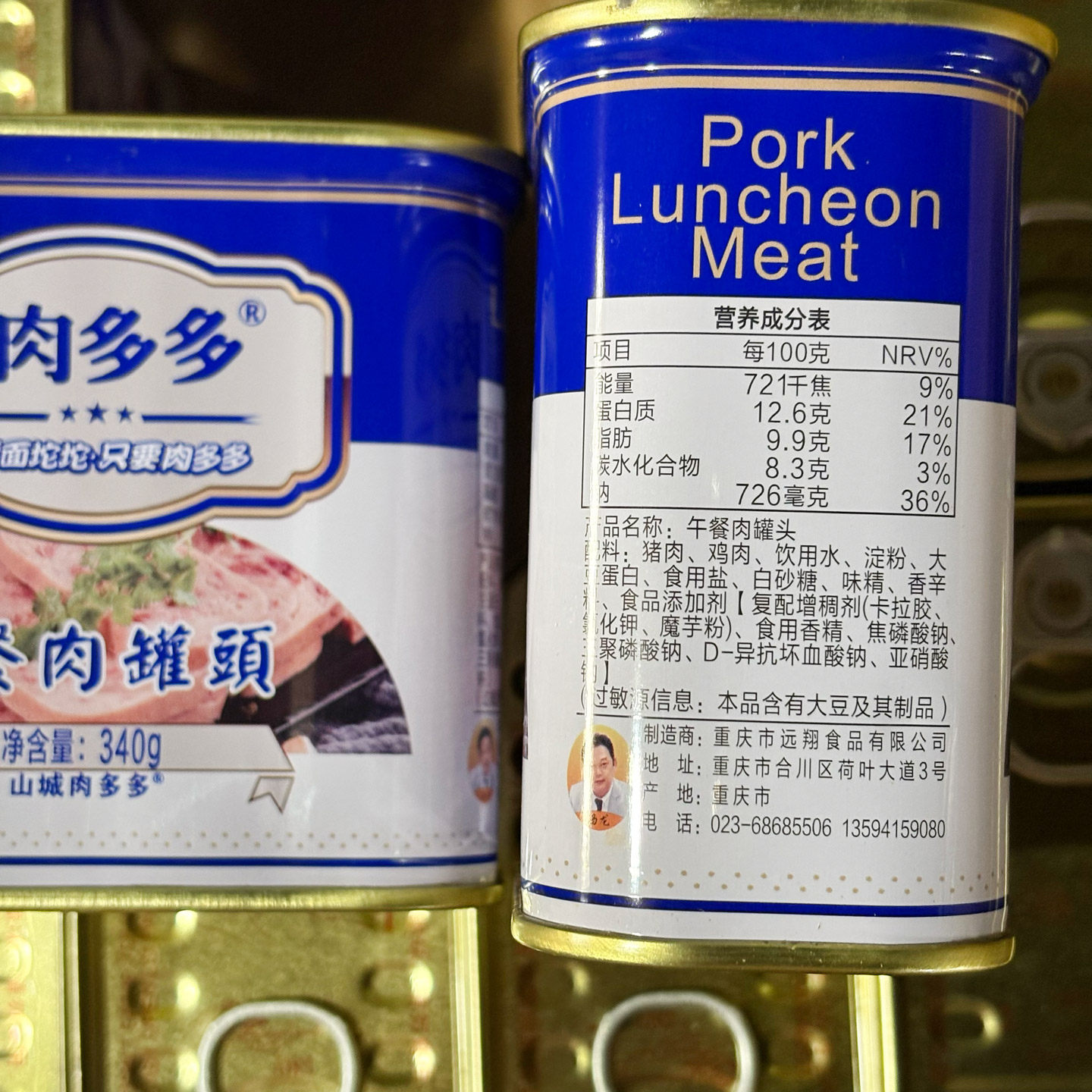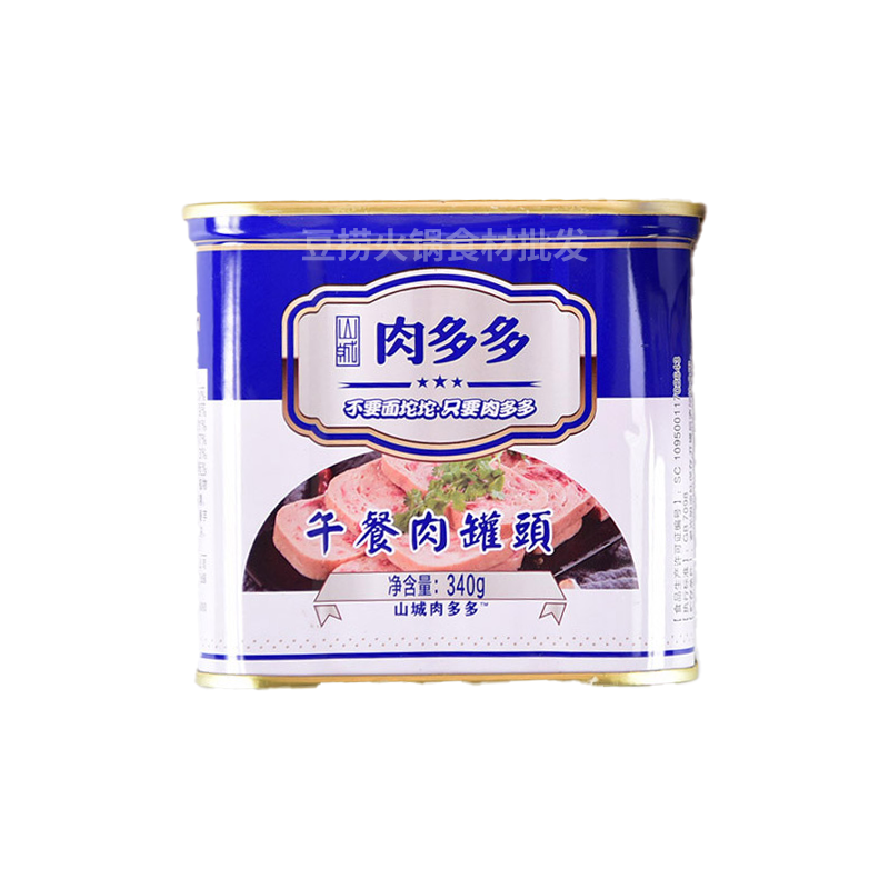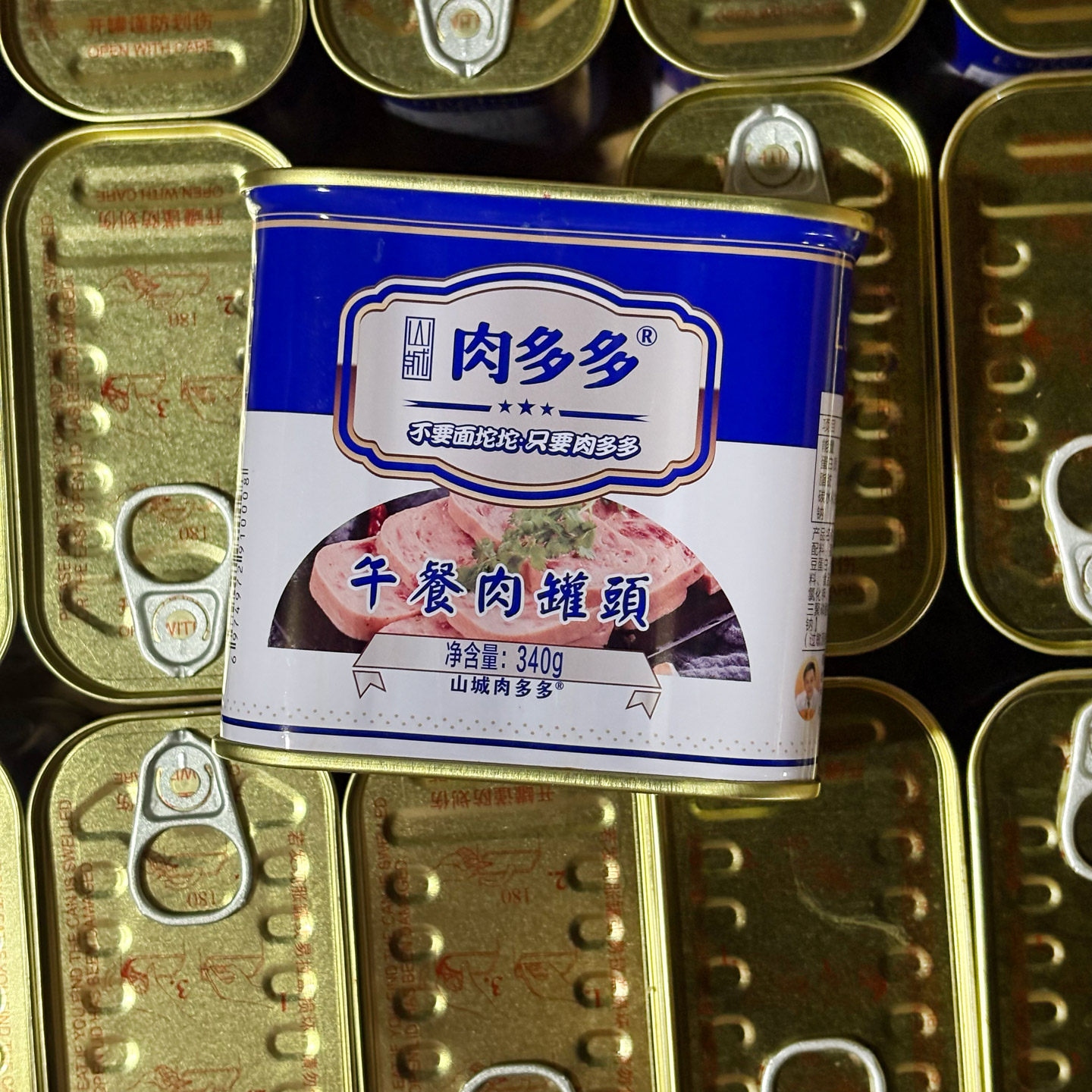 📚 山城肉多多午餐肉看得见肉的火锅午餐肉猪肉罐头商用340克*24罐
