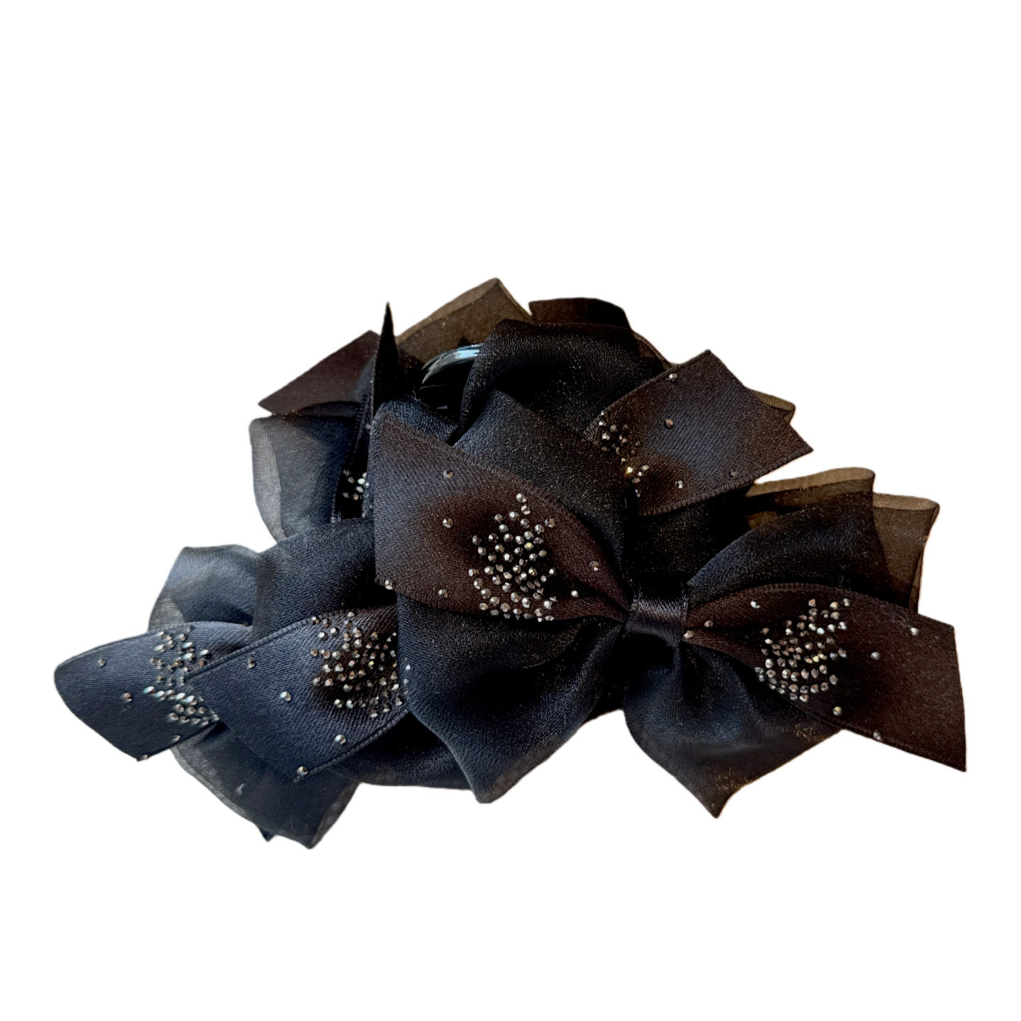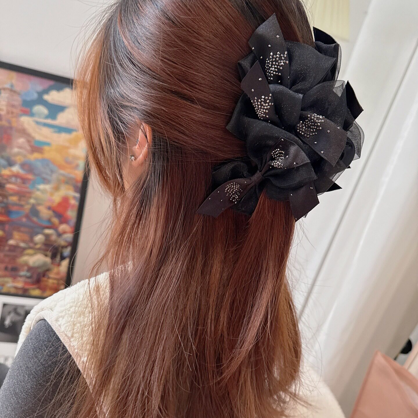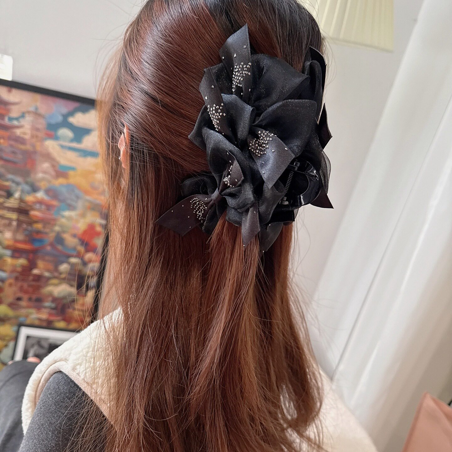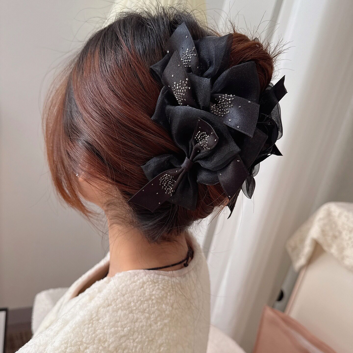 📚 气质点钻黑色蝴蝶结抓夹高级感百搭时尚发卡后脑勺鲨鱼夹子发饰女