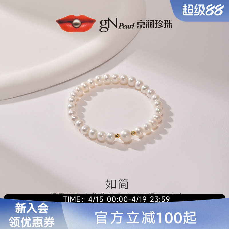 📚 京润珍珠如简925银淡水珍珠手链5-8mm近圆/馒头形生日礼物送女友D