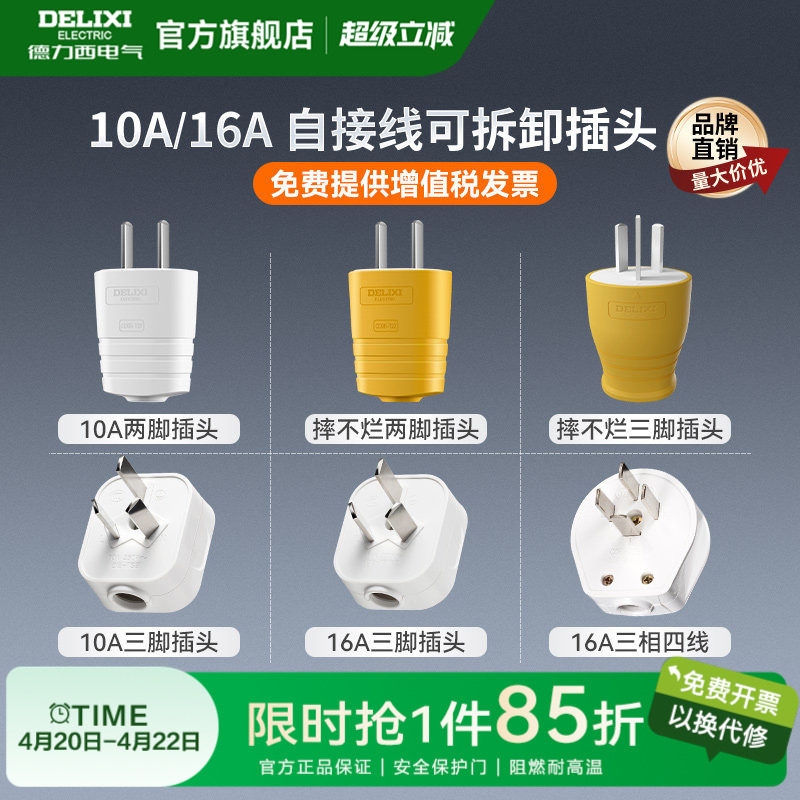 📚 德力西插头二脚三脚10a16a大功率电源电线插头二三孔不带线三插孔