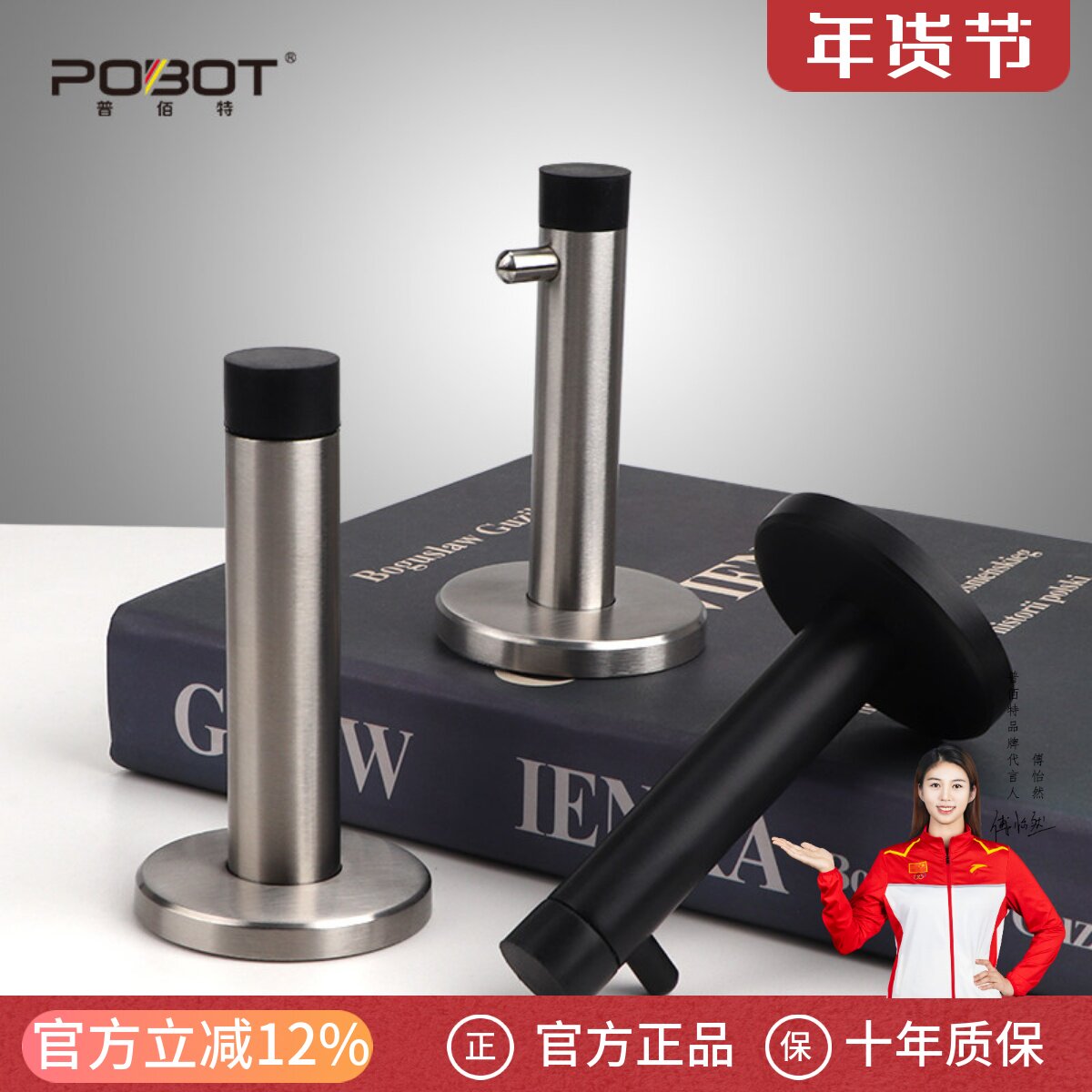 📚 普佰特加厚门顶防撞入户门门挡器卧室门碰门阻限位器不锈钢门顶杆