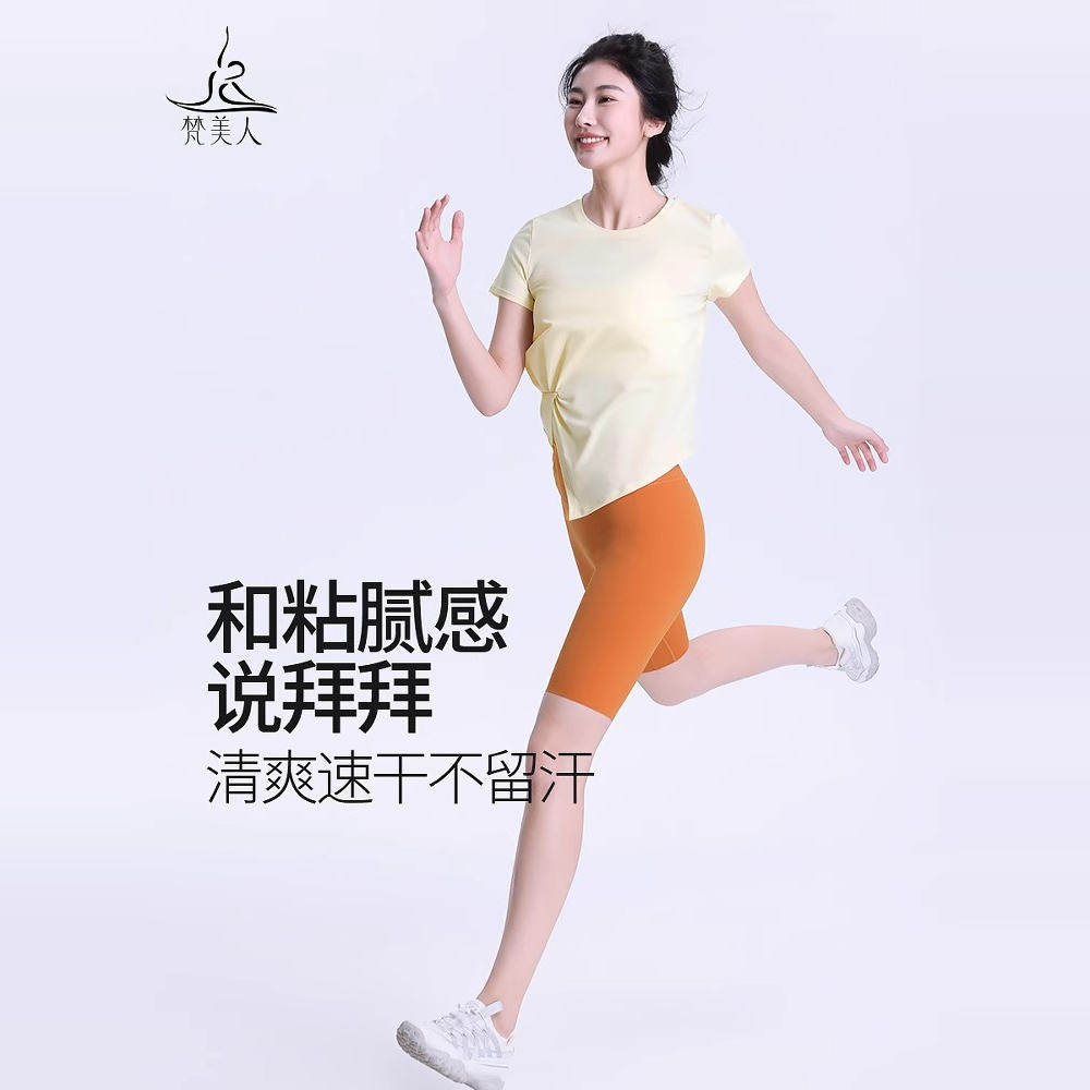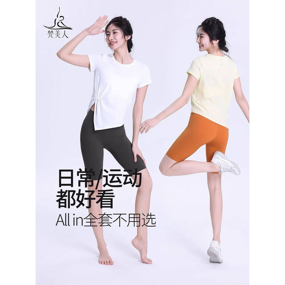 📚 梵美人绝美瑜伽服上衣短袖女新款宽松防晒速干专业高端健身衣1177