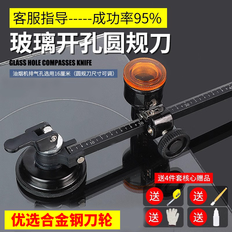 📚 玻璃开孔圆规刀划圆刀玻璃鱼缸排气窗割圆刀家用玻璃开口打孔神器