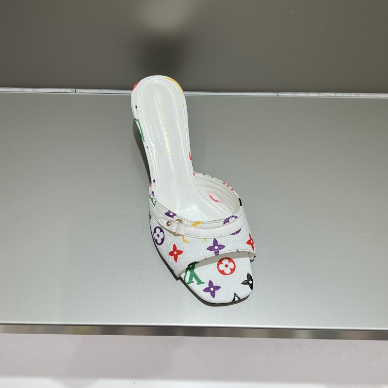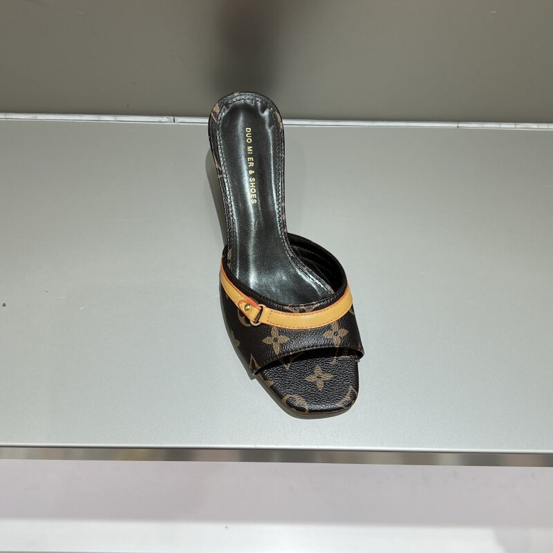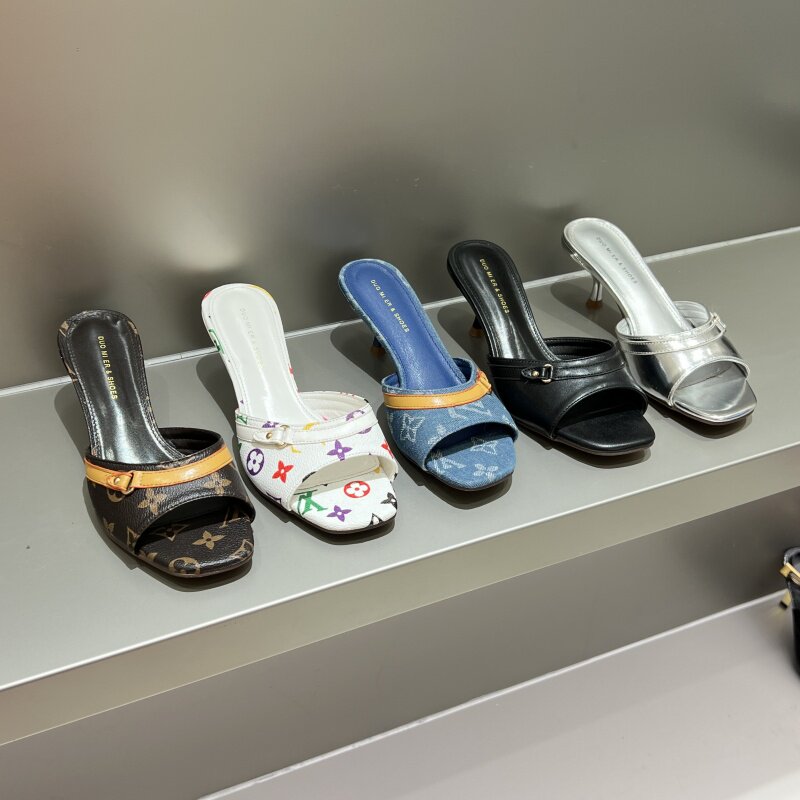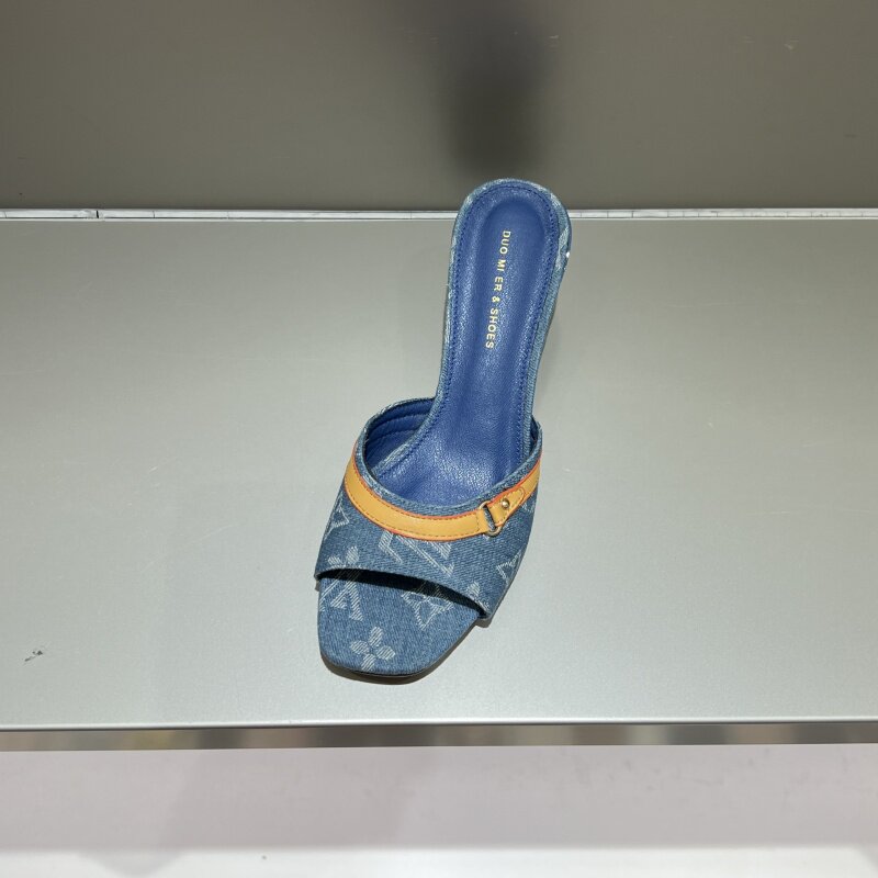📚 十三行女鞋实拍一字拖浅口凉拖牛仔布复古气质女夏细跟中跟懒人拖