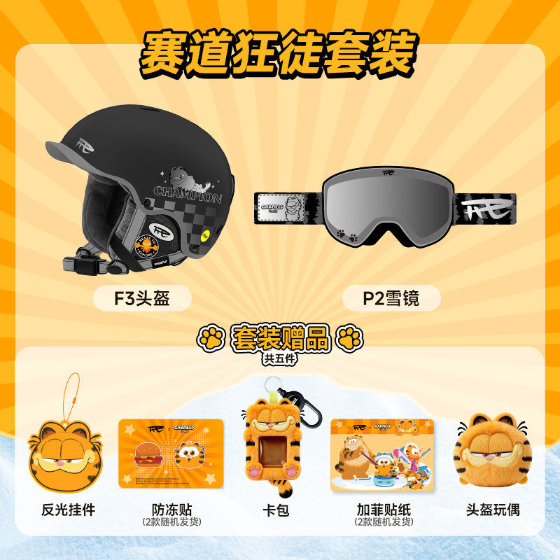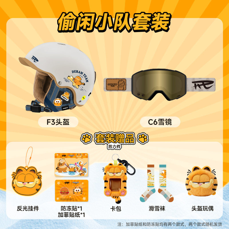 📚 REV锐伍×加菲猫家族联名款F3滑雪头盔眼镜雪镜玩偶MIPS亚洲版型