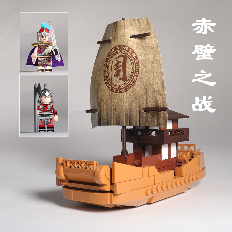 📚 新品三国战船模型火烧赤壁之战草船借箭周瑜诸葛亮拼装积木玩具