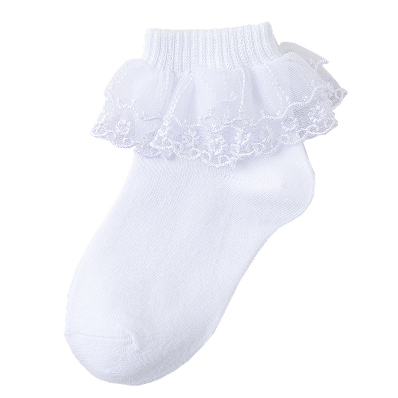 📚 女童袜子双层蕾丝花边春秋冬棉袜白色舞蹈袜女孩公主袜宝宝儿童袜