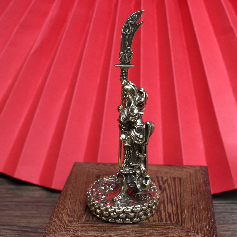 📚 实心铜关公小摆件黄铜关羽铜像口袋佛仿古微雕铜人古玩铜器铜雕像