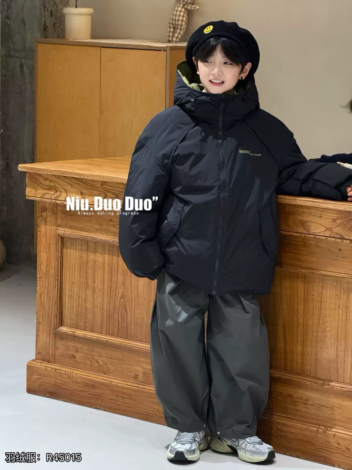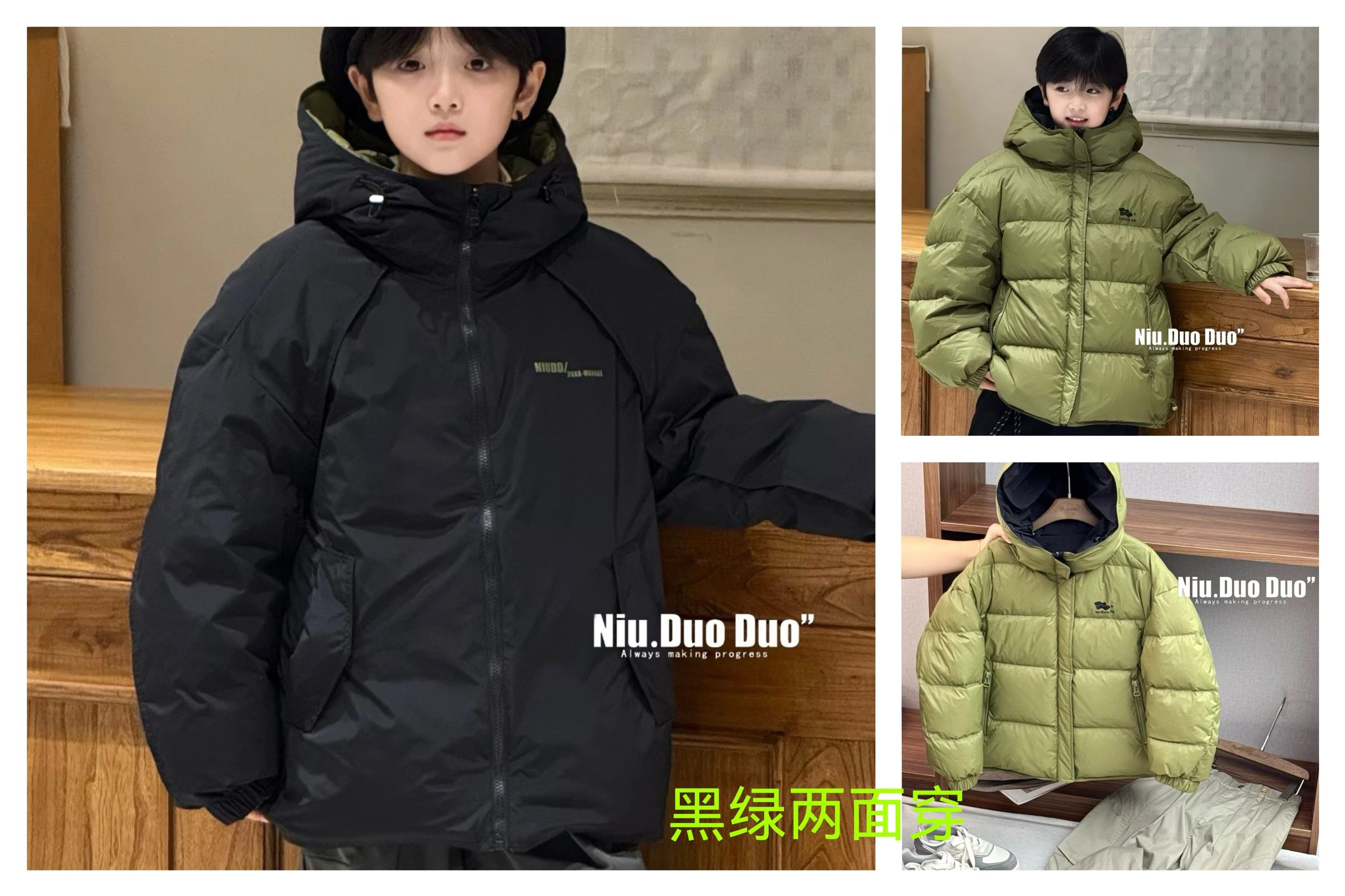 📚 牛哆哆童装2025冬新款两面穿羽绒服男女童连帽90白鸭绒外套45015