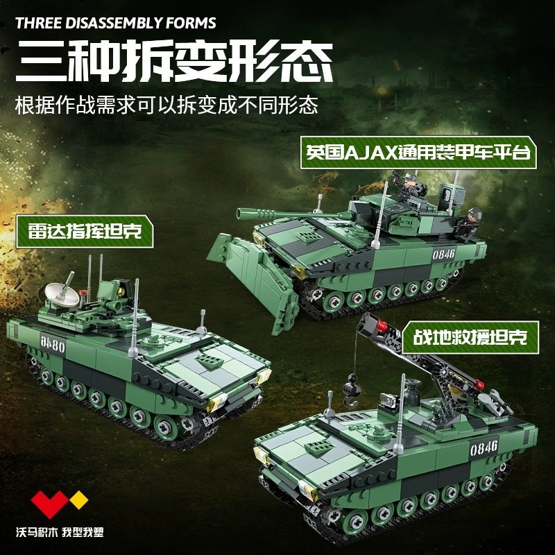 📚 沃马积木男孩子军事坦克AJAX通用装甲车模型儿童益智力拼插装玩具