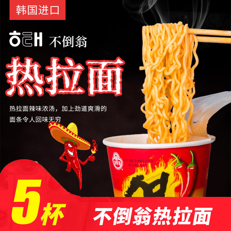 📚 韩国进口泡面不倒翁热拉面62g*5杯辣味奥土基方便面速食品宿舍