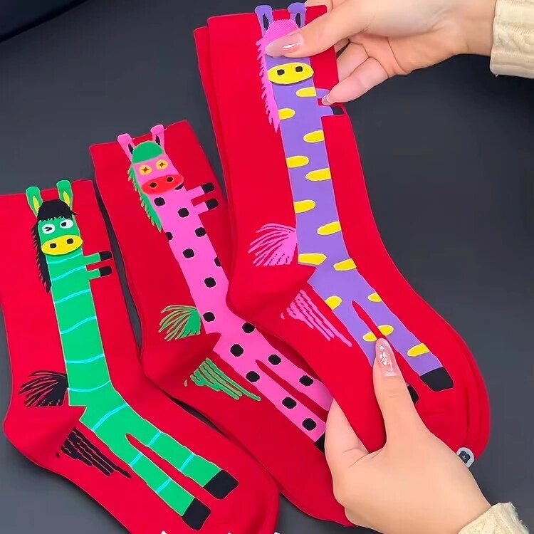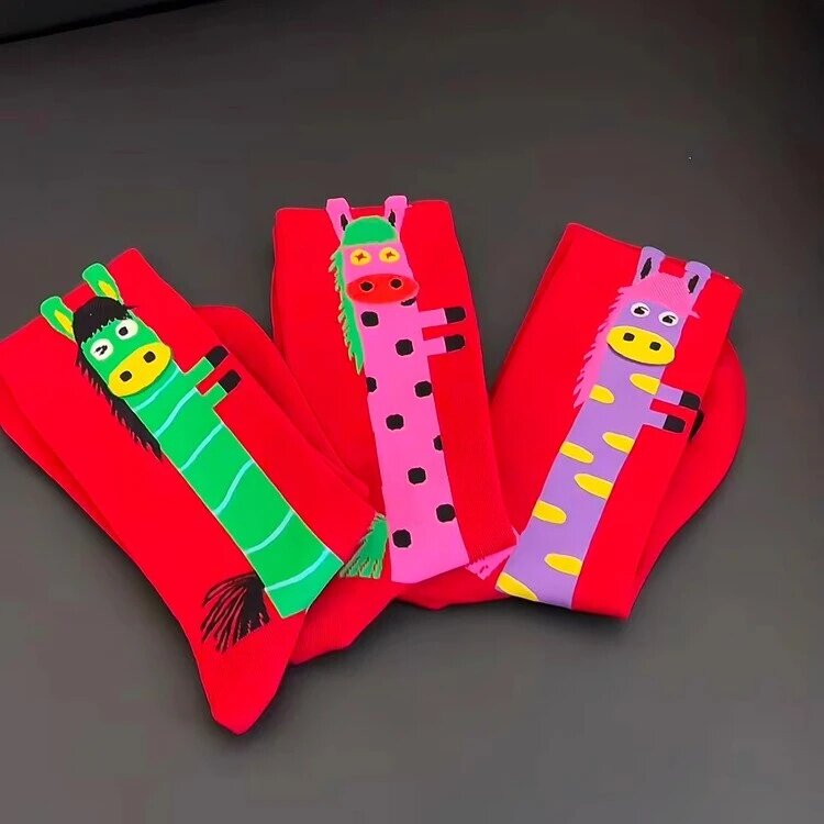 📚 儿童袜子2026马年本命年红袜子属马的男童女童中筒袜新年大红袜