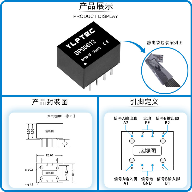 📚 SP00S12信号浪涌抑制 总线保护器 波特率10M 50mA YLPTEC