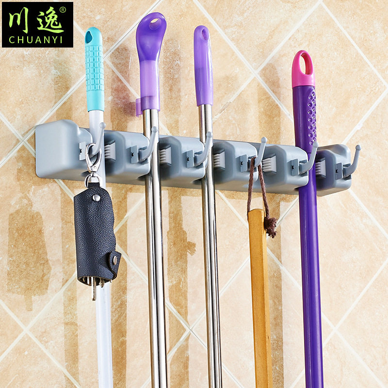 📚 Broom Holder and Rake Mop Wall Tool 5 Slots 6 Hook拖把扫帚架