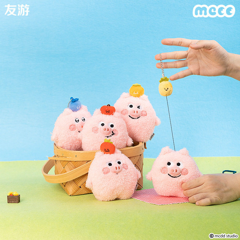 📚 友游猪培根水果挂件毛绒公仔拉线橘子草莓小猪玩偶钥匙扣生日礼物
