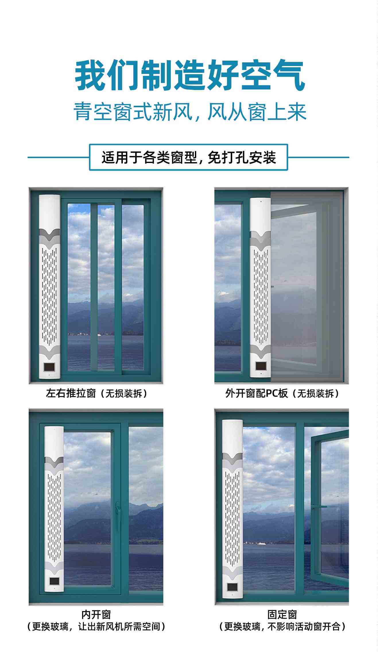 📚 青空窗式新风机免打孔排风新风系统家用沿街灰尘户型不通新装修