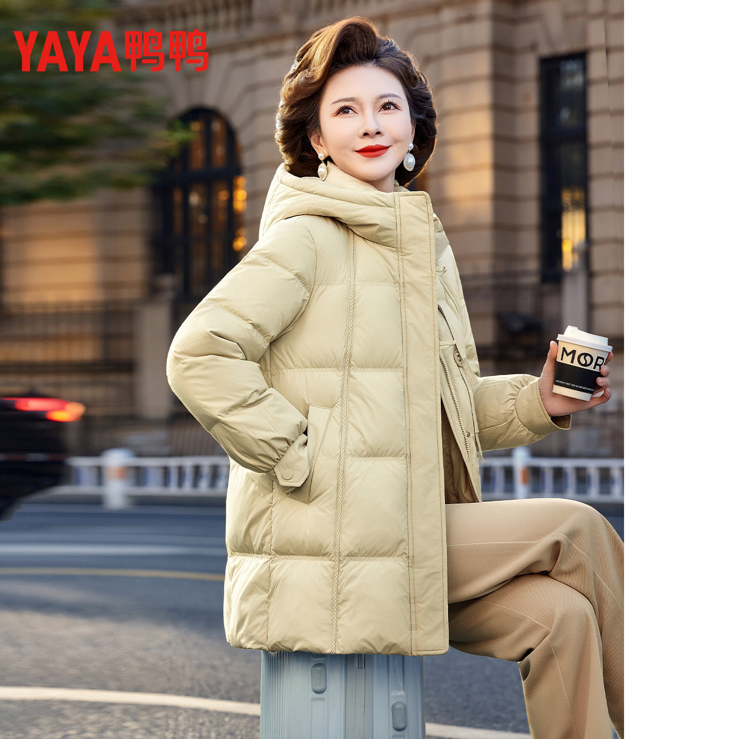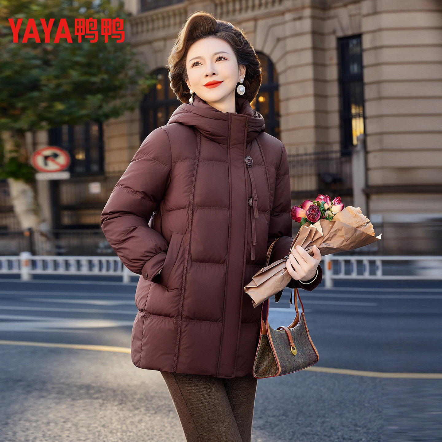 📚 鸭鸭中年妈妈装羽绒服女冬季连帽90绒实用口袋加倍保暖中长款外套