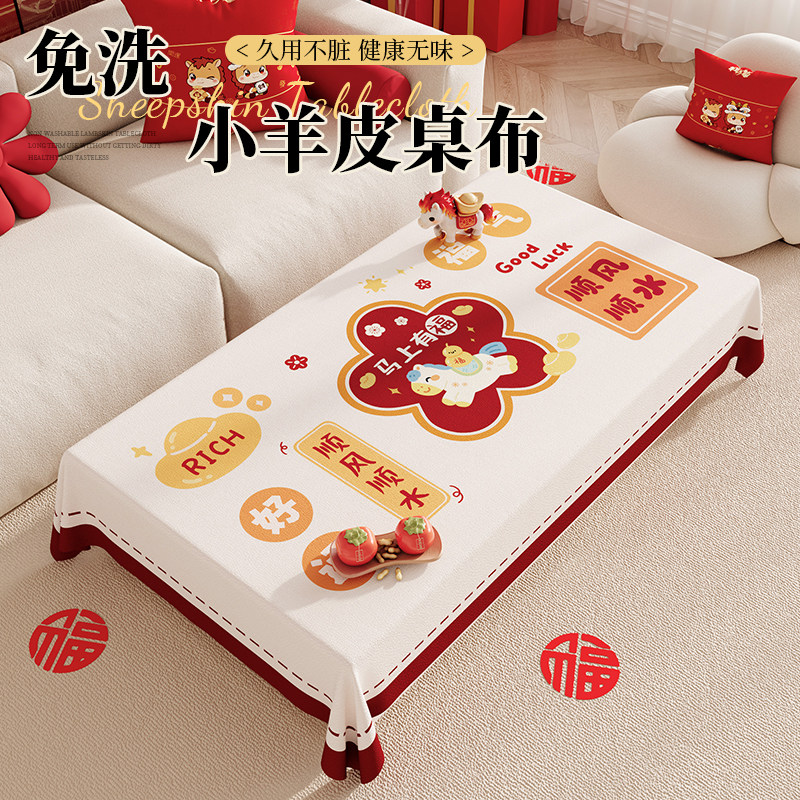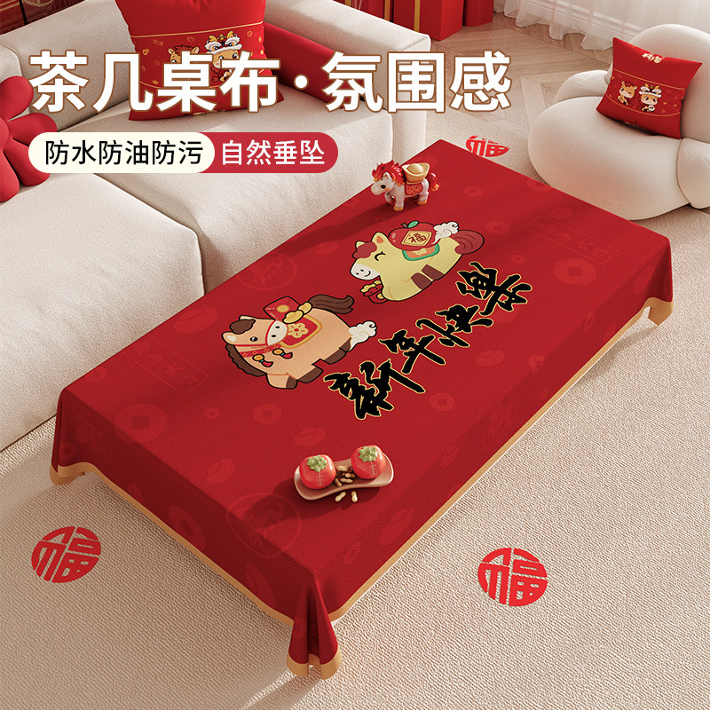 📚 2026新款茶几专用桌布防水防油防烫新年喜庆红色客厅长方形餐桌垫