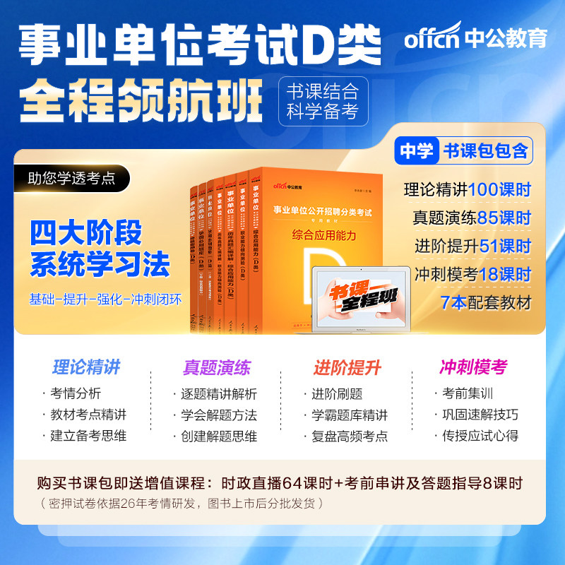 📚 中公教育2026年事业编d类网课事业单位中小学教师d类网课书课包职测综应视频课程系统班职业能力倾向测验综合应用能力教材历年真题