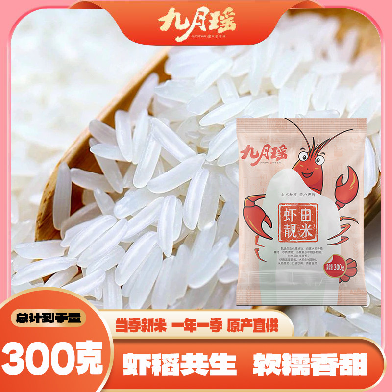 📚 九月瑶虾田靓米300g尝鲜装小包独立包装新鲜长粒粘米猫牙米丝苗米