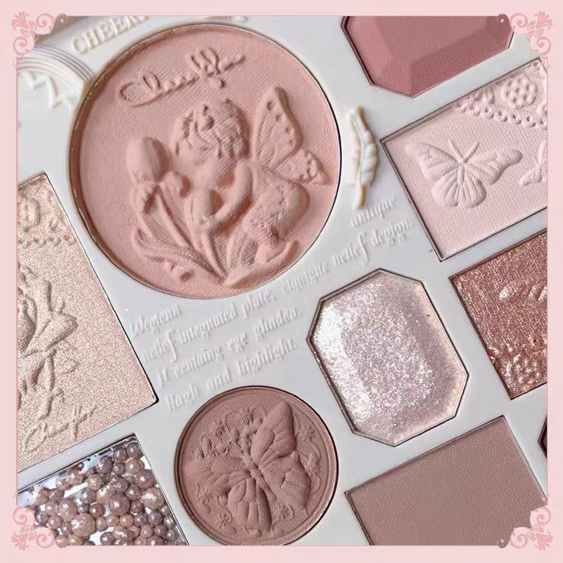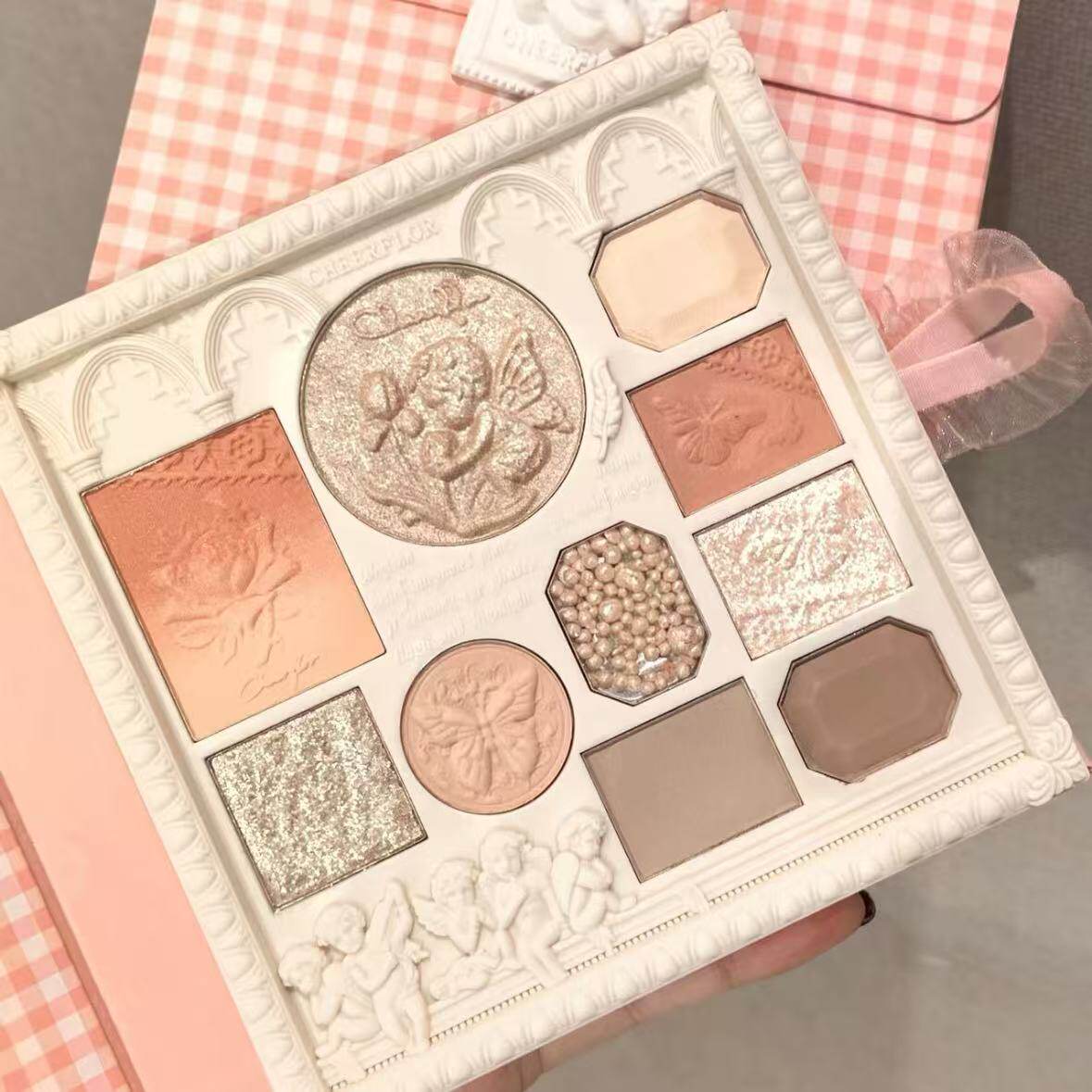 📚 cheerflor天使浮雕眼影盘腮红高光一体盘游乐者奶茶色大地色新款