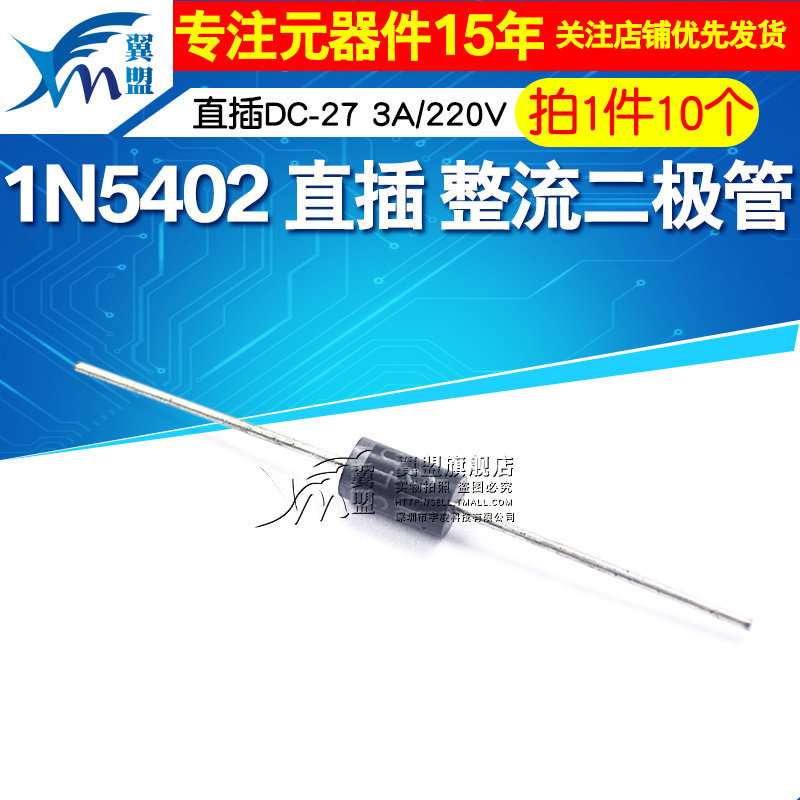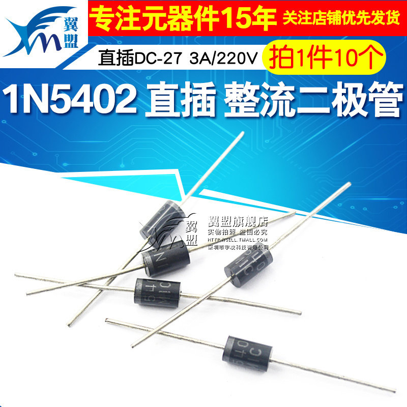 📚 翼盟 1N5402 IN5402 直插DC-27 整流二极管 3A/220V 10个