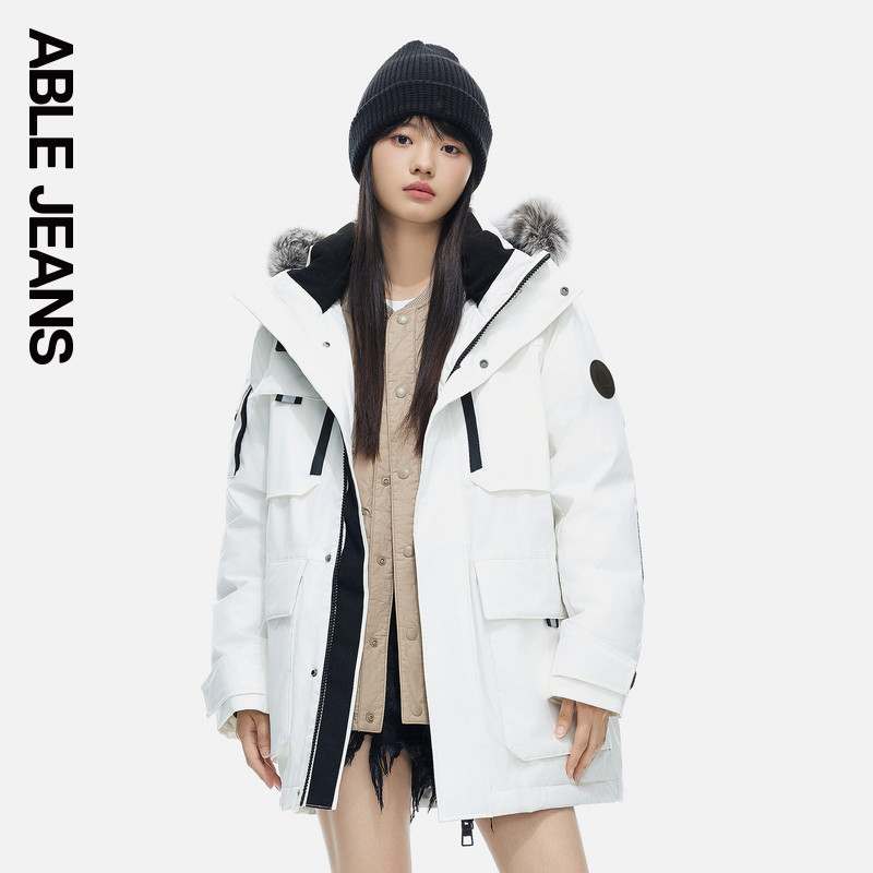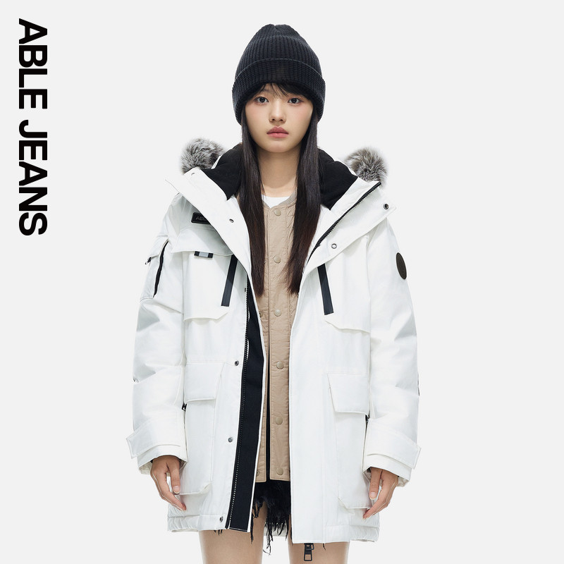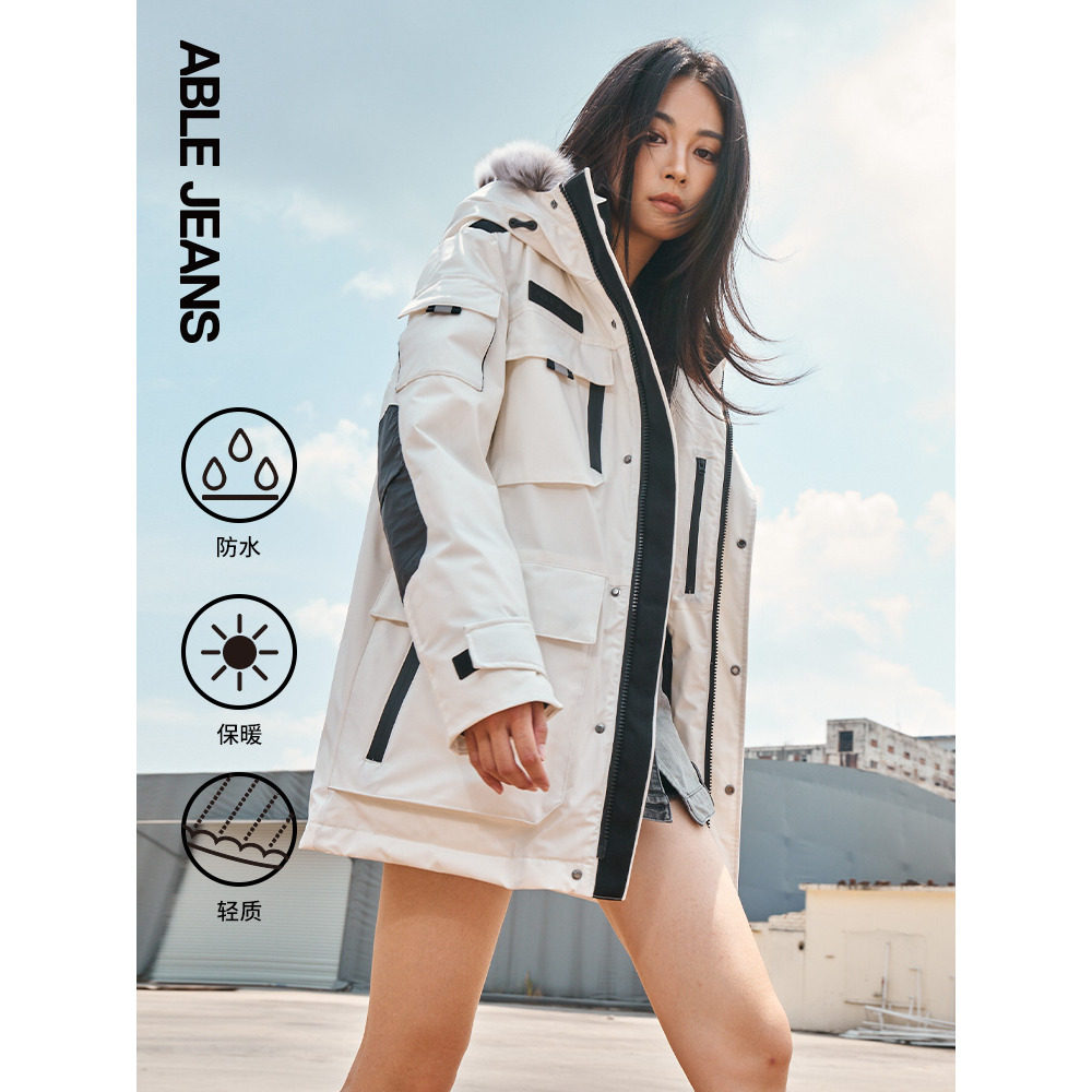 📚 ABLE JEANS 冬季新款女士防风工装机能中长羽绒服中长款宽松保暖