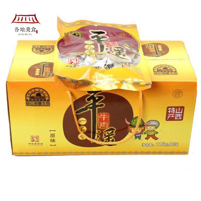 📚 冠云平遥牛肉一品香118g*10袋整箱礼盒原味独立真空小包装山西特