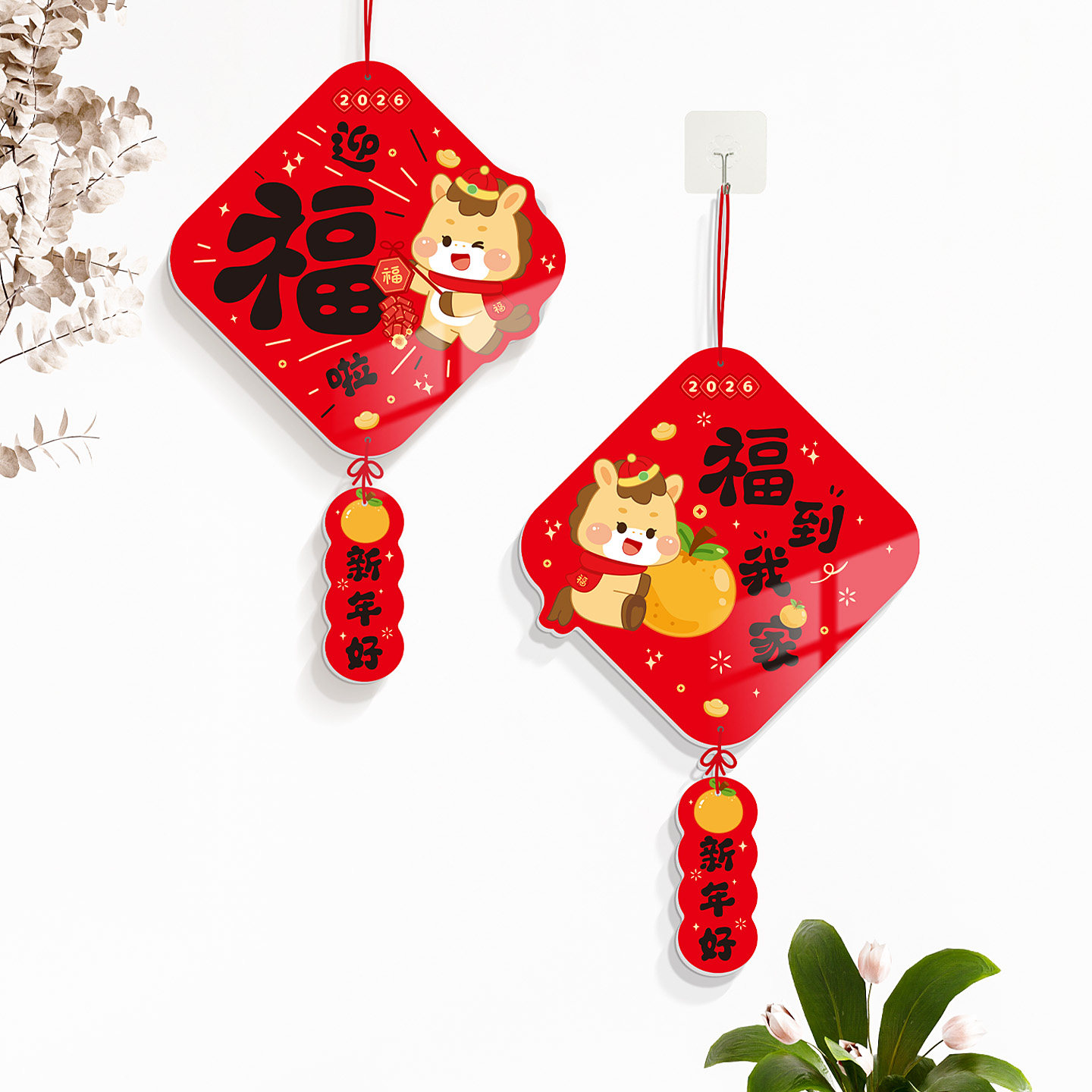 📚 2026马年装饰挂件春节挂饰福字背景墙客厅卧室门挂马年遮丑挂牌