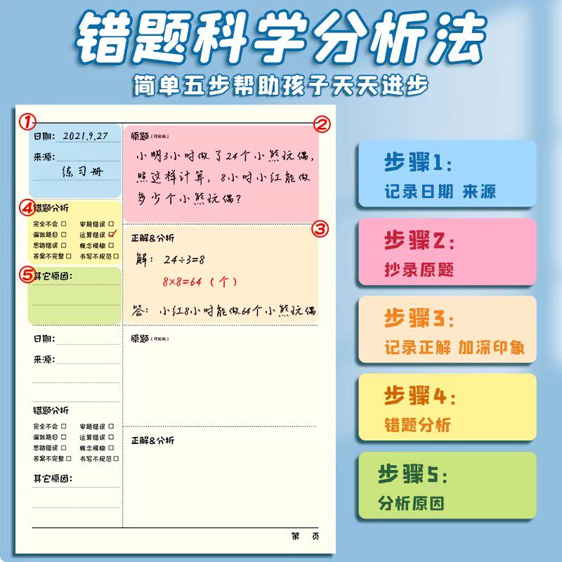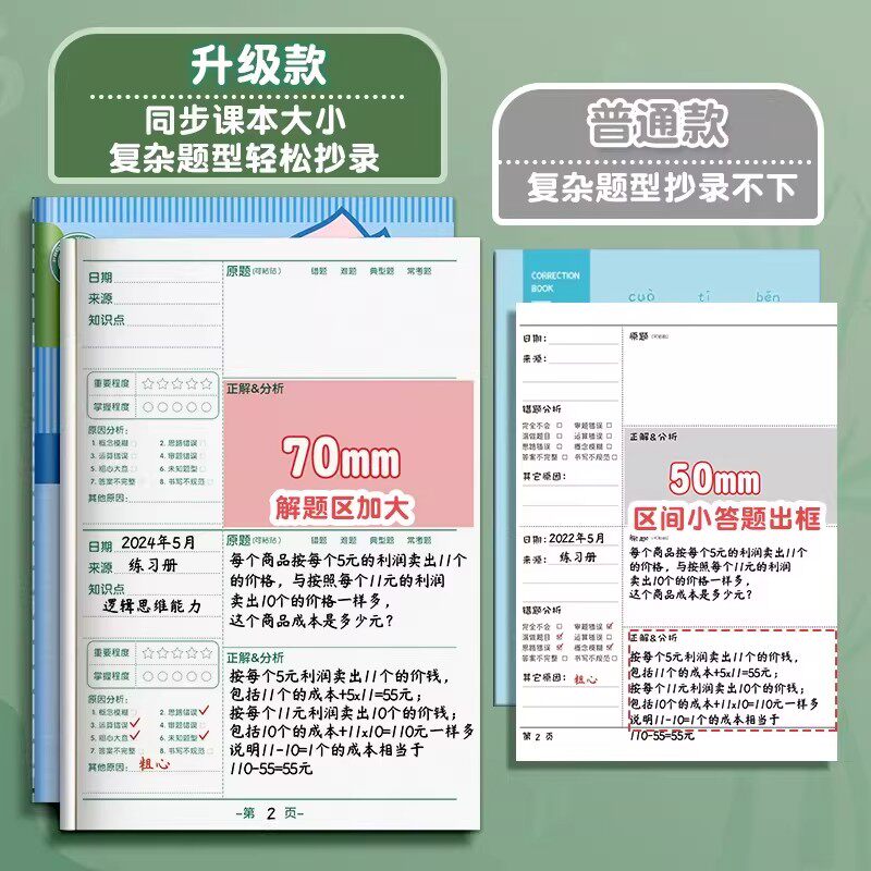 📚 免抄题错题本小学生专用纠错本语文数学英语错题集一年级作业订正改错本三四五六年级易错题整理本