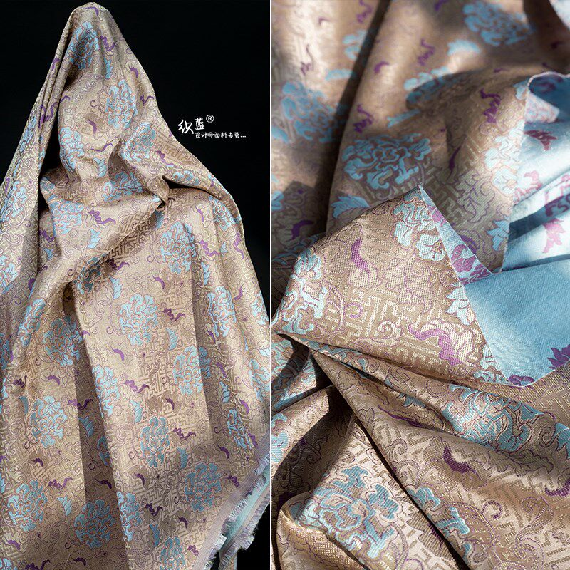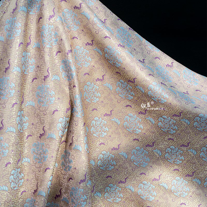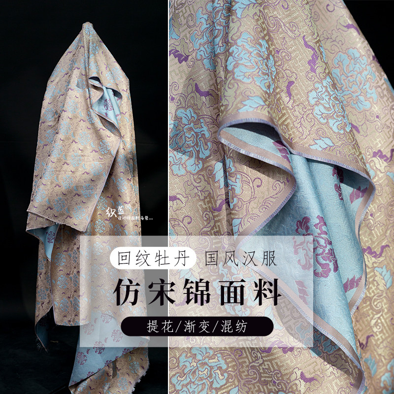 📚 回纹牡丹仿宋锦面料花卉渐变人丝混纺布料旗袍外套国风汉服装面料