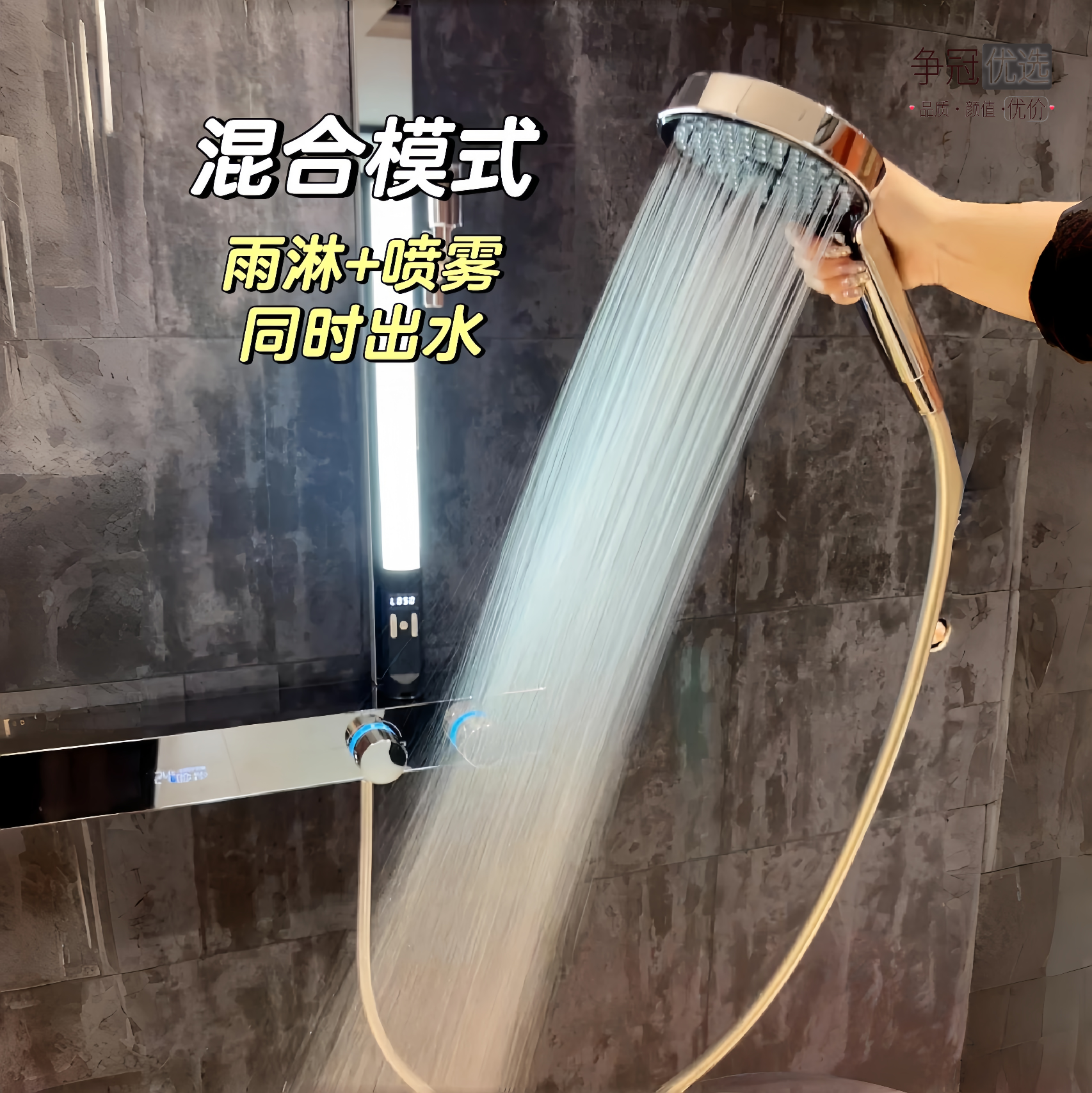 📚 【数显镜面款】争冠360数显淋浴增压花洒套装卫生间家用明装全铜