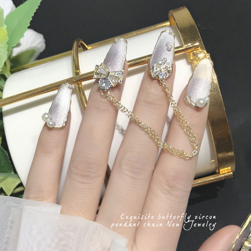 📚 网红热销珍珠蝴蝶结小熊兔子美甲饰品锆石水钻闪轻奢流苏吊坠砖石
