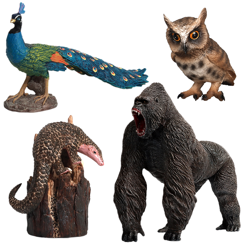 📚 单个大号仿真动物模型实心硬孔雀摆件玩具环保猫头鹰猩猩狼狗狗