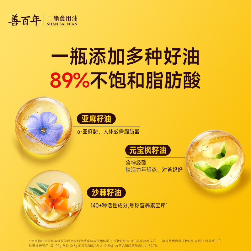 📚 善百年50%甘油二酯油500ml亚麻籽油调和二脂油官方食用油健康家用