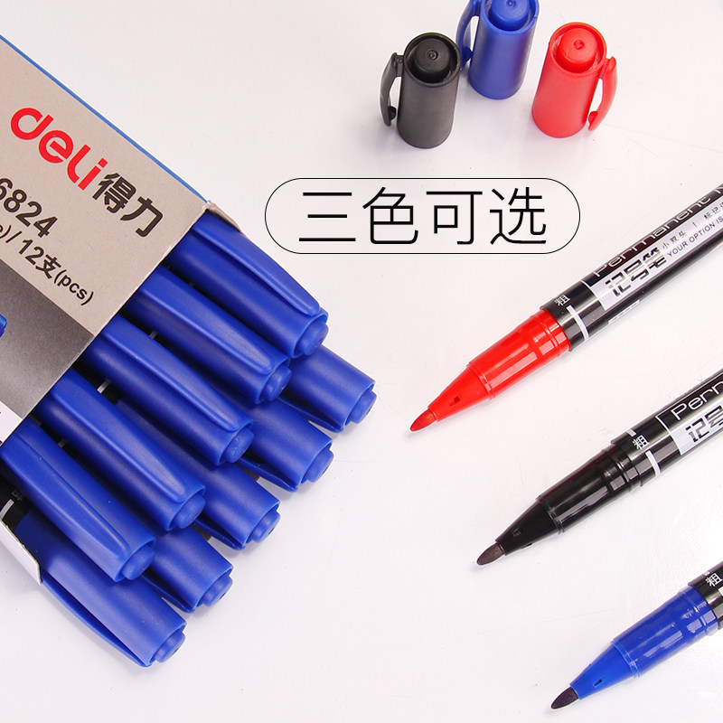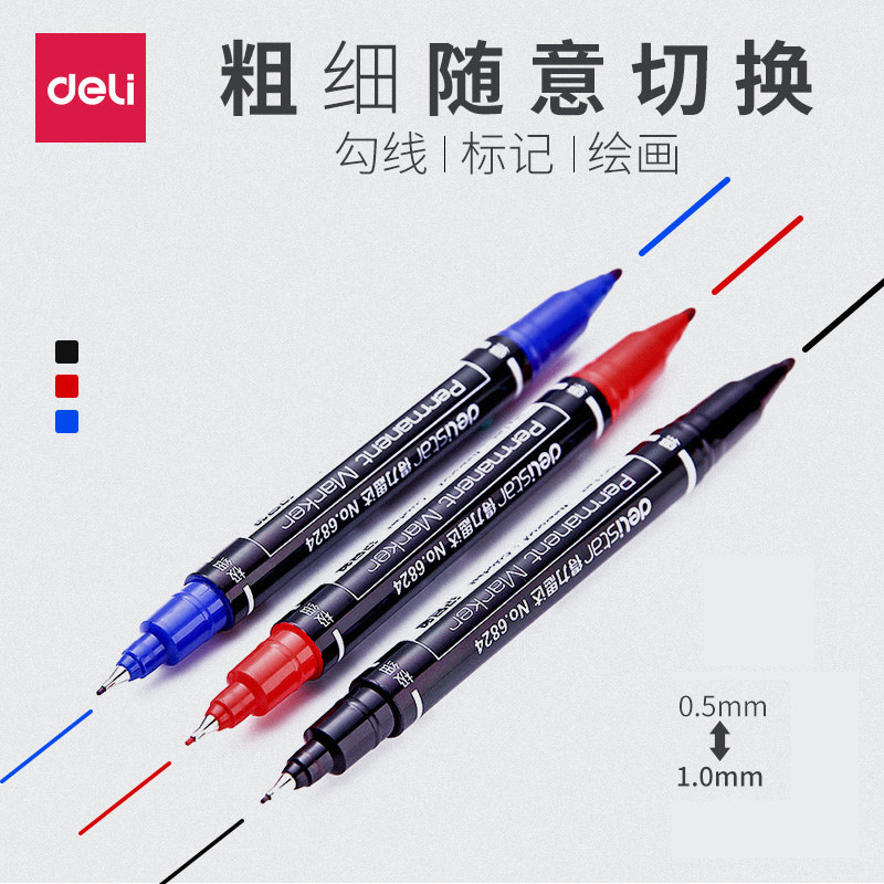 📚 彩色12支套装得力记号笔6824双头油性马克笔学生儿童美术绘画绘图勾线笔划线笔油性笔粗头细头醒目文具批发