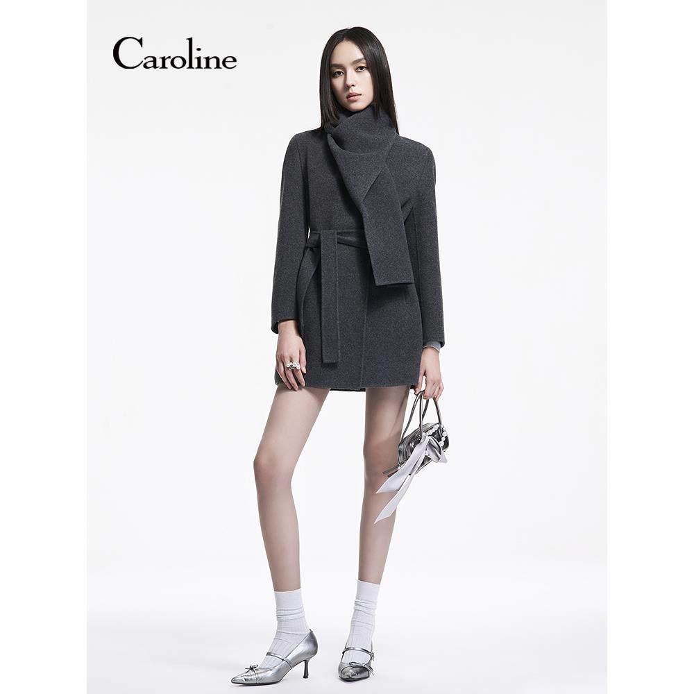 📚 Caroline卡洛琳2025冬季新款优雅围巾领羊毛毛呢外套ERC7D01A