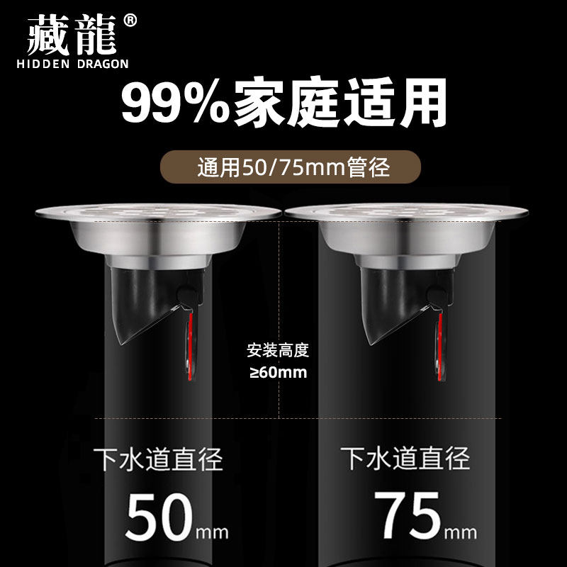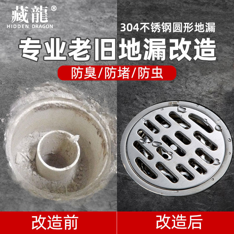 📚 藏龙卫生间圆形厨房老式下水道PVC旧地漏改造防臭304不锈钢圆地漏