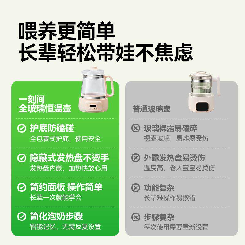 📚 一刻间全玻璃恒温烧水壶智能热水婴儿冲奶家用温热奶专用调奶器