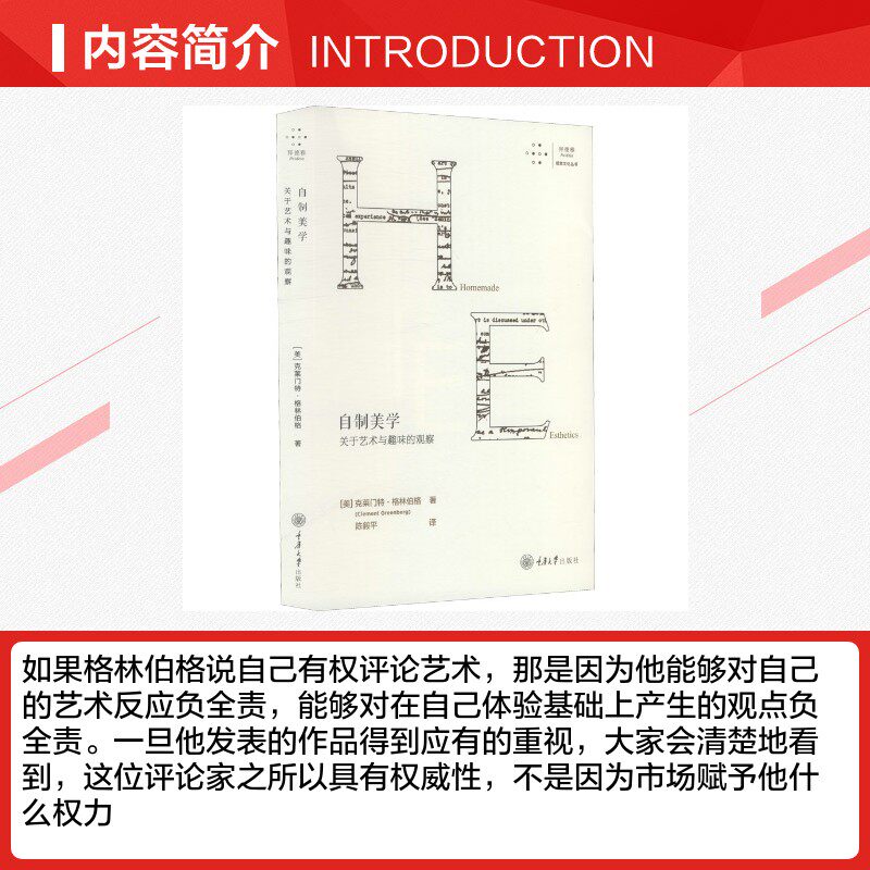 📚 自制美学 关于艺术与趣味的观察 (美)克莱门特·格林伯格 著 陈毅平 译 艺术其它艺术 新华书店正版图书籍 重庆大学出版社